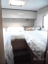 La scelta migliore per chi cerca un mansardato di qualità. Disposizione con letti gemelli che è stata rivisitata per rendere l'esperienza di viaggio sempre migliore. Disposizione: Dinette a ''elle'' con sedili girevoli bagno con doccia sperata ma in unico ambiente, cucina ad angolo spaziosa con frigo grande, armadio alto per uno stivaggio comodo + due armadi ai piedi dei lettini. Meccanica: Fiat 2.2 140cv con climatizzatore. Dotazione standard: Doppio pavimento tecnico, oscuranti plissè in cabina, porta xl con gradino elettrico estraibile zanzariera e finestra, chiusura centralizzata, serbatoio grige coibentato e riscaldato, sensori park, postapacchi + scaletta posteriore. Dotazione aggiuntiva 60y: Freno a mano elettrico, a/c automatica, retrocamera + display Fiat quadro digitale a colori, infotainment Uconnect 10" con navigatore integrato, wireless phone charger.