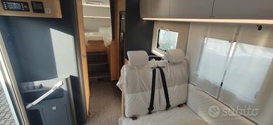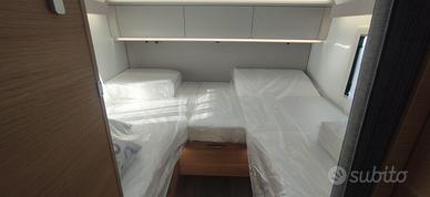 Adria Coral XL 660 SL -versione 60esimo In questo 2025 Adria compie i suoi 60 anni di attività e per l'occasione vuole premiare i clienti offrendo una piccolissima gamma di veicoli dal design particolare studiato solo per questa versione , completi di una serie di accessori plus OMAGGIO che troveremo solo a partire da Maggio e solo per questo 2025 fino ad esaurimento scorte. Posti omologati : 5. Posti Letto: 5 Montato su meccanica Fiat Ducato 2.2 140cv Il Coral XL 660 SL tra i mansardati più amati è stato scelto ed inserito in questa gamma celebrativa. Il mansardato più bello sul mercato ,con i nuovi letti gemelli posteriori, la parete posteriore , costruito su un nuovo doppio pavimento alto 13 cm dove sono stati disposti i serbatoi per meglio bilanciare il veicolo durante la marcia, renderlo più ordinato nella disposizione degli impianti. Adria Coral XL 660 SL , Il veicolo adatto alla famiglia che vuole godere a pieno degli spazi che solo il mansardato può offrire, pratico per chi cerca ampi spazi di carico. I letti posteriori gemelli permettono a chi si sveglia prima, di non dover scavalcare e scendere facilmente senza svegliare nessuno e permette di accedere a tutti i pensili ed agli spazi che il veicolo può offrire. Ampio guardaroba posto sotto i letti con i portelloni che vanno a rientrare grazie alla slitta lasciano un utilizzo facilitato. Un garage strutturato con un carico max di 200kg, riscaldato e dotato di corrente 12/220volt e luci per caricare biciclette uno scooter o tutta l'attrezzatura sportiva per fare attività anche in vacanza. Dotazione Standard: Doppio pavimento tecnico Serbatoi acque grigie isolati e riscaldati Scocca esterna in vetroresina Porta ingresso large con finestra e pattumiera Impianto Riscaldamento Truma Combi 6 Impianto elettrico comandato elettronicamente Bagagliera con scaletta Predisposizione aria condizionata Predisposizione pannello solare Predisposizione impianto Tv Cappa Aspirante Cucina 3 Fuochi Svuota