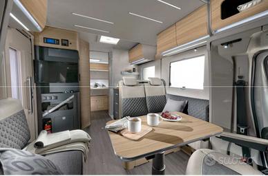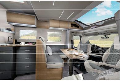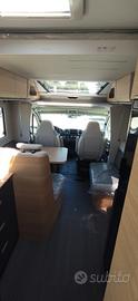 Nella parte anteriore sopra la dinette è posizionato un letto matrimoniale basculante elettronicamente per offrire all'ocorrenza un altro spazio dove coricarsi dotati di reti salvacaduta per bimbi e scaletta per accedervi.