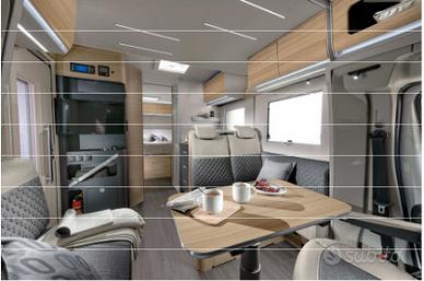 Questa disposizione con i letti gemelli in coda permette di vivere tutto il camper accedendo a tutti pensili graziea allo spazio abitativo a pianta aperta.