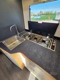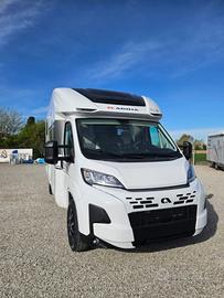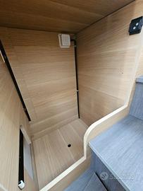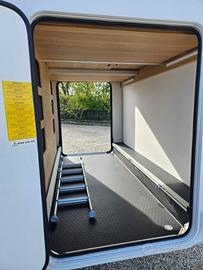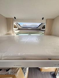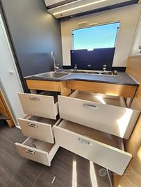 Chilometraggio: Condizioni: nuovo Immatricolazione: Tipologia: Camper - Parzialmente integrato Carburante: Altro Tipo di cambio: Manuale Meccanica: FIAT DUCATO 2,2 140 HP Lunghezza: 7485 Larghezza: 2299 Altezza esterna: 2905 Posti letto: 4+1 Posti omologati: 5 EQUIPAGGIAMENTO: Faro retronebbia Luci diurne alogene DRL Pneumatici camping car rinforzati Trazione anteriore Vetri elettrici cabina Sedili cabina regolabili in altezza e profondità Sedili cabina con piastra girevole Oscurante parabrezza + vetri laterali cabina plissettati Doppio pavimento tecnico Porta ingresso (650 mm.) con chiusura centralizzata, finestra, zanzariera e pattumiera Portabombole integrato 2 x 11 Kg. Sensori di parcheggio posteriori Finestre SEITZ S4 con cornice, oscurante e zanzariera Pareti laterali in vetroresina Protezione esterna pavimento in polyestere Oblò panoramico Polyplastic cupolino cabina (apribile) Oblò panoramico con luci 400 X 400 sopra il letto basculante Scocca in vetroresina Barre portatutto sul tetto con scaletta esterna Gradino integrato isolato con luce di cortesia Gradino di ingresso esterno elettrico Tecnica di costruzione Comprex Bandella laterale in alluminio Letto basculante anteriore elettrico (cm.) 200×125 Dinette a L Panca con cintura di sicurezza Isofiix Maniglia ingresso con luci LED integrate Cuscini dinette preformati in schiuma (spessore 120 mm) Dimensioni letto posteriore (cm.) 205×80;180×58;203×80 Frigorifero (Lt.) 142 Lavello in acciaio inox Cappa aspirante Cucina 3 fuochi con coperchio Toilette con doccia separata Rubinetto doccia separato Valvola elettrica scarico acque grigie Serbatoio acque grigie mobile (Lt.)85 Serbatoio acque grigie coibentato con riscaldamento regolabile/Serbatoio acque bianche (Lt.)115 Pompa a pressostato Prese USB in zona living e camera da letto Convertitore DC/DC Interruttore elettrico generale di sicurezza 230 V Interruttore elettrico generale 12 V Luci amb