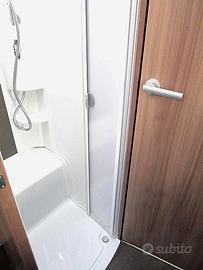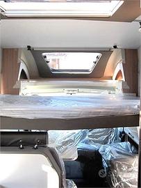 Disposizione: Ampia zona living, dinette avanzata con divano laterale e sedili girevoli, cucina ad elle con forno, frigo 160 lt, due armadi, bagno diviso in due zone.