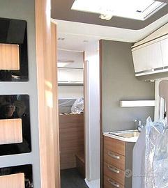 Disposizione: Ampia zona living, dinette avanzata con divano laterale e sedili girevoli, cucina ad elle con forno, frigo 160 lt, due armadi, bagno diviso in due zone.