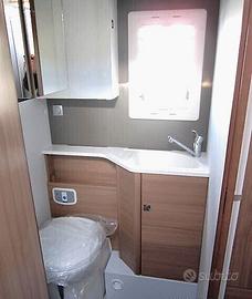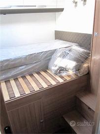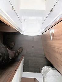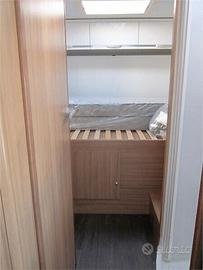 Disposizione: Ampia zona living, dinette avanzata con divano laterale e sedili girevoli, cucina ad elle con forno, frigo 160 lt, due armadi, bagno diviso in due zone.