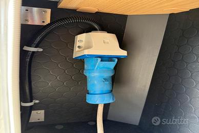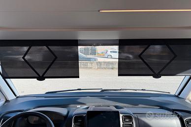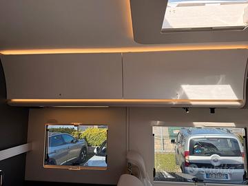 SiIl veicolo e dotato di doppio pavimento tecnico,cellula con pareti e tetto in vetroresina,bandelle in alluminio,Fari ant . e post a Led.