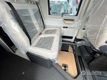 Altezza interna (mm.) 1900 Altezza esterna (mm.) 2600 Lunghezza esterna (mm.) 6363 Larghezza esterna (mm.) 2050 Passo (mm.) 4035 Posti omologati (guidatore incluso) 4 Peso a pieno carico massimo autorizzato (Kg.) 3500 Peso in ordine di marcia MRO-min (Kg.) 2920 Peso massimo rimorchiabile (Kg.) 2500 Airbag passeggero Airbag guidatore FIAT MultiJet3 2,2 140HP Colore Fiat 113 - ARTENSE GREY METALLIC Pack BK8 (comandi radio al volante + antenna nello specchio lat.) Pack BK6 (paraurti ant. verniciato + piastra paramotore nera + fendinebbia ant. Pack BKD (Cerchi in lega 16'' + Volante e pomello cambio rivestito in pelle + Diffusori aria cruscotto cromati) Pack Pivoting Chairs +Box under seats + Traction+ Kit Fix & Go Fiat Specchi esterni elettrici con funzione disapannamento Fiat Serbatoio gasolio maggiorato 90 Lt. ESP Cruise control con Speed Limiter FIAT A/C cabina Fiat manuale Sedili cabina Fiat 'Captain Chair' in tessuto Adria con doppio poggiabraccio Porta bicchiere su cruscotto centrale Fiat CZ. ADRIA VEHICLE INFORMATION Serbatoio Ad Blue (Lt.) 19 Faro retronebbia Luci diurne alogene DRL Trazione anteriore Sedili cabina con doppio poggiabraccio Vetri elettrici cabina Sedili cabina regolabili in altezza e profondita' Sedili cabina con piastra girevole Vetri cabina oscurati Oscurante parabrezza + vetri laterali cabina plissettati E. CARROZZERIA Tetto a soffietto GRIGIO - Finestre oscurate con cornice, zanzariera e oscurante Finestra con cornice 818 x 315 mm Sx+Dx in camera Finestra parete laterale bagno Sensori di parcheggio posteriori Zanzariera porta scorrevole Oblo' 400 x 400 mm. camera da letto Oblo' 700 x 500 mm. (Midi HEKI) zona living Sky-roof anteriore con oscurante Terzo stop luce posteriore Gradino di ingresso esterno elettrico Fermo porta scorrevole (escluso porta elettrica) Materassi EVOPORE X Armadietti pensili rivestiti in legno Letto poseriore elettrico Posti letto 2