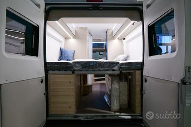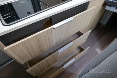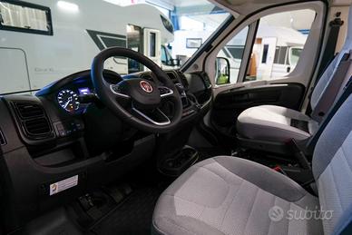 Dotazioni extra: "solid paint", Colore FIAT 676 - EXPEDITION GREY (€1.200,00), Serbatoio acque grigie coibentato con riscaldamento regolabile (€400,00), Letto addizionale (€350,00), Oscurante vetri laterali cabina plissettati (€325,00), Set cuscinidecorativi OCEAN SERENITY, FIAT Multijet3 140HP, Paraurti anteriore verniciato EXPEDITION GREY, Color Pack EXPEDITION GREY, Zanzariera porta scorrevole (€600,00), Tessuti AUDREY.