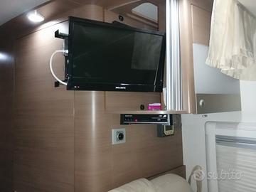 Motorhome patente B di alta fascia bellissimo e super accessoriato con soli 68000km provvisto di aria condizionata sia in cabina che in cellula Dometic p2200 caldo/freddo con telecomando, doppio televisore camera e salotto, entrambi con digitale terrestre, doppia antenna, terrestre e parabola autodirezionale, letti basculanti entrambi elettrici, grande gavone riscaldato con portamoto, piedini di auto livellamento elettrici ant e post. telaio AL-Ko, doppio pavimento riscaldato, pannello solare, tendalino Thule, gruppo elettrogeno Dometic Tec29 con comando dall'interno, telecamera posteriore, cb con antenna elettrica,forno a gas, Antifurto, cerchi in lega.