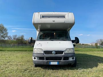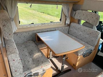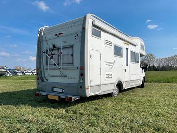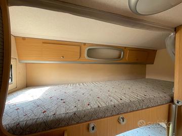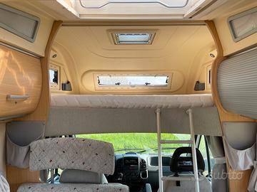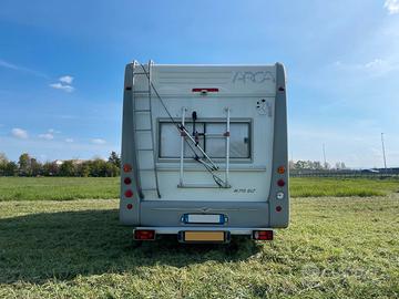 L'arca m715 e' un camper mansardato di alta gamma pronto ad affrontare qualsiasi tipo di clima ideale per la famiglia per poter viaggiare senza rinunciare allo spazio e al comfort. Il layout e' composto da grande letto matrimoniale in mansarda molto areato grandi letti a castello in coda da poter trasformare in comodo garage. Ampia zona giorno con dinette classica e divano con tavolo allungabile grande armadio e tanti storage profondi e divisi. La cucina con 3 fuochi inox e piano e lavabo in vetroresina con forno scaldavivande e frigorifero 150 lt automatico. Tra i vari accessori troverete: clima in cabina alzacristalli e specchietti elettrici telecamera di retromarcia stereo doppia batteria inverter tendalino luce esterna portabici rilevatore fughe gas doppio serbatoio oblo' panoramico attacco esterno 12/220 portamoto truma combi gas 6000 cal