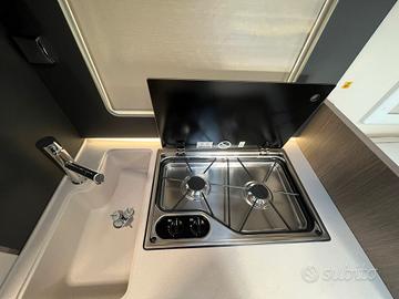 Cucina lineare con capienti cassettoni e piano cottura a 2 fuochi