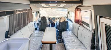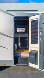 L'allestimento della cellula non è da meno, garantendo totale autonomia e lusso: oscurante plissettato in cabina, bandella apribile, porta cellula "XL" con 2 punti di chiusura e chiusura centralizzata su porta cellula e cabina. L'autonomia energetica è eccezionale grazie al pannello solare da 200 W con regolatore MPPT, 2 batterie a litio da 100 AH e un Inverter da 2000 W. Il comfort in ogni stagione è assicurato dal gavone garage riscaldato, dal serbatoio acque grigie riscaldato e dalla stufa Combi diesel 6KW Elettrico. A completare, un frigorifero a compressore da 174 litri, il rivestimento soffitto in soft touch, l'I-NET X System, una presa esterna gas e la luce esterna a LED. Questo motorhome è l'investimento definitivo nel viaggio di lusso.