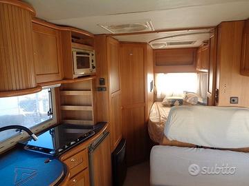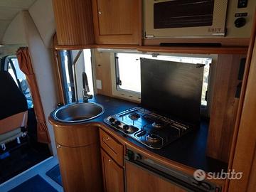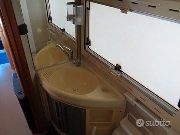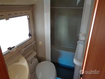 Il bagno ha la doccia separata ed il mezzo e' equipaggiato con tendalino, forno a gas,portapacchi,doppio serbatoio,antifurto,portabici, sospensioni ad aria, autoradio,pannello solare, turboventola, inverter, retrocamera, attacco esterno acqua e gas.