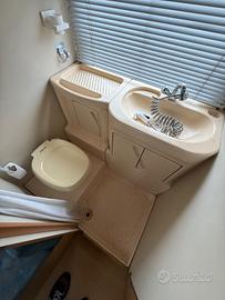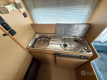 Letto basculante, doppia Dinette, bagno con doccia, portabici, angolo cottura con frigo, trivalente, stufa, trama con canalizzazione in tutto il camper, Boiler per l'acqua calda, doccetta esterna, attacco 2:20, esterno, doppio serbatoio delle acque, chiare, Cavone, porta bombole per il gas dei servizi
