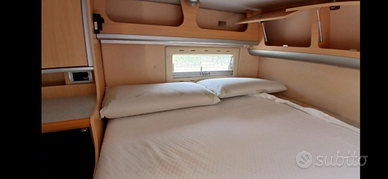 Camper con due letti matrimoniali fissi più il terzo si ottiene dalla dinet centrale, letto della mansarda con materasso in memory 23 cm, bagno con doccia separata, come da foto illuminazione a LED e casse stereo in cellula.