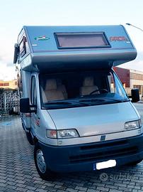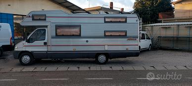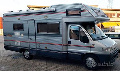 Su Fiat Ducato, euro 1, 115 cv misure lunghezza 701 cm larghezza 222 cm Anno 07/1994, 156.700 km 5 posti viaggio/7 letto, doppia dinette Dotazione: senza clima cabina clima sul tetto veranda F45 nuova porta bici scala bagagliera oscuranti termici esterni cabina pneumatici anteriori recenti M+S Sempre tenuto al coperto Il mezzo arriva in sede nei prossimi giorni.