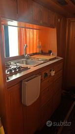 Doppia dinette anteriore, un letto a castello, un letto matrimoniale, una stanza separata con letto matrimoniale. Cucina con lavello, gas e frigorifero. Serbatoio acque chiare 400 lt. Impianto di condizionamento di tipo domestico con alimentazione tramite inverter. Impianto per alimentazione/ricarica batterie tramite rete elettrica, alternatore, pannelli solari o generatore elettrico. Telecamere perimetrali. Boiler acqua calda Webasto. Riscaldamento ad aria canalizzata Webasto.