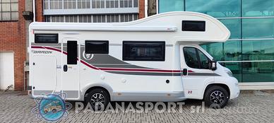 Disposizione con doppia dinette centrale e letti a castello posteriori trasversali con possibilità di volume variabile per aumentare il carico.Bagno con vano doccia separato,frigorifero a colonna slim tower trivalente e capiente mansarda con grande letto matrimoniale.Questo veicolo della serie BARON monta stufa/Boiler combi a gasolio.