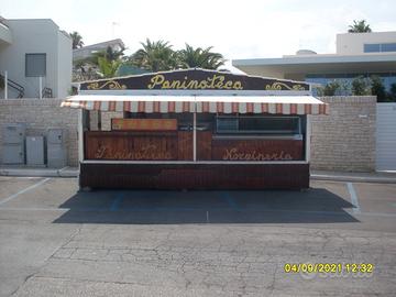 automarket rimorchio adibito a paninoteca ,attrezzato con 1 lavello,1 banco frigo,1 cella frigo ,2 pozzetti congelatore,1 frigo vetrina bibite 1 banco lavoro,impianto allarme con sirena