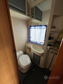Portabici, pannello solare, tetto calpestabile e portapacchi, omologato 5 posti, stufa truma, frigo trivalente, WC con cassetta, bagno con doccia separata, doccia esterna, tendalino nuovo thule, antenna TV.
