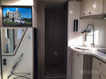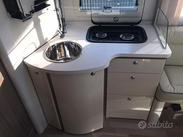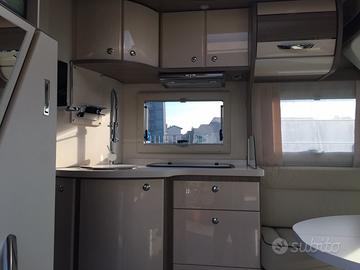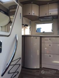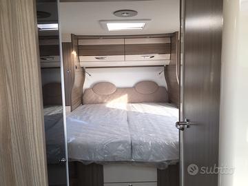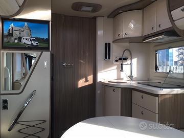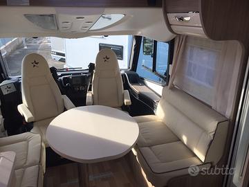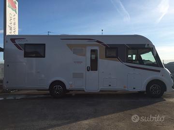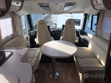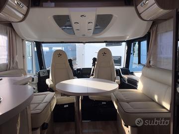 Prestigioso motorhome con letto nautico, qualità senza compromessi lo pongono ai vertici della categoria. Il telaio AL-KO con doppio pavimento permette di affrontare i climi più rigidi, i serbatoi sono alloggiati internamente isolati e riscaldati. Comode aperture da entrambi i lati consentono di accedere al doppio pavimento per lo stivaggio. Oltre al grande letto centrale ed al garage, il veicolo offre una zona toilette con doccia contrapposta completamente separabile tramite due porte, sia dalla camera da letto, sia dalla zona giorno. In questa zona troviamo un salotto di ultima generazione in grado di accogliere agevolmente gli occupanti anche con il letto abbassato il quale non intacca minimamente la dinette. La cucina è ricca di pensili, vani, cassetti estraibili, piano cottura a due fuochi, cappa aspirante, un profondo lavello, miscelatore flessibile e frigorifero con cella freezer separata. Molto curata anche l'insonorizzazione con soffitto rivestito di schiuma isolante soft touch.