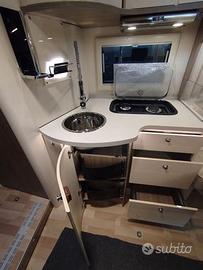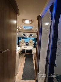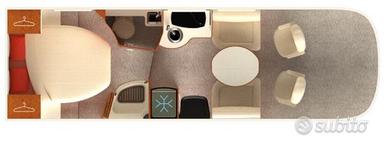Motorhome di alta gamma su telaio Alko con doppio pavimento passante , motorizzazione Fiat Ducato 2.2 180 cv con cambio automatico, cerchi in lega da 16", serbatoio maggiorato 75 l. omologazione 4 posti viaggio. Dinette face to face, disposizione con letto centrale nautico e bagno/doccia separati. Riscaldamento Truma Combi 6 gas/elettrica con interruttore automatico protezione gas duo control, Frigorifero da 175 L. con cella freezer separata, materassi in memory di alta qualità.
