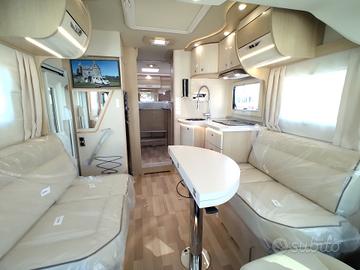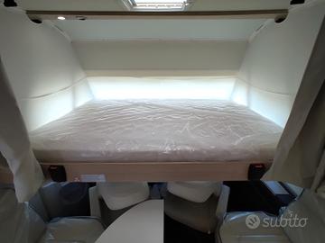 Ampio gavone posteriore con letti gemelli sovrastanti, telaio Al-Ko, doppio pavimento passante, serbatoi potabile/recupero in posizione antigelo, dinette face to face, motorizzazione 180cv e CAMBIO AUTOMATICO.