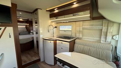 Nella parte anteriore si trova un letto matrimoniale basculante, una dinette face to face con sedili viaggio forniti di attacchi isofix, un tavolo allargabile e girevole a 360° e sedili di guida con staffa che ne permette la rotazione a completare una dinette da 4/6 posti.