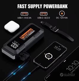 Booster Avviatore di emergenza povasee Power Bank 5000A Avviatore di emergenza Germany, con display LCD da 3 pollici, con due uscite USB, cavi di emergenza, per veicoli da 12 V, ha una corrente di picco di 5000 A, cavi di avviamento robusti e una batteria di grande capacità di 88.8WH, che possono avviare veicoli a 12V (fino a tutti i motori a benzina o diesel ), come Camper motociclette, automobili, camion, SUV, tosaerba, ecc.