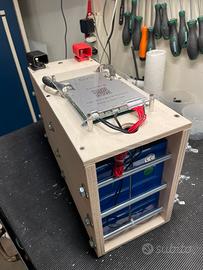 Realizzo batterie ausiliarie servizi per Camper, caravan e barche o batterie di accumulo per fotovoltaico con celle Litio Ferro Fosfato (LifePo4) con la capacità e gli ingombri richiesti. La batteria è gestita da BMS 200A con bilanciatore attivo integrato e sonde di temperatura. Controllabile via Bluetooth tramite App su cellulare. Celle nuove di grado A con garanzia
