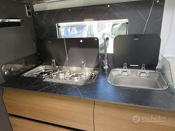 In aggiunta: pannello solare 200w, serbatoio di recupero isolato e riscaldato, gradino ingresso isolato, predisposizione seconda batteria, climatizzatore cabina, seconda piattaforma di ricarica wireless, pannello strumentazione completamente digitale, Truma Bluethouth, Tendalino esterno, impianto di allarme totale, Tv Smart anteriore, gavone posteriore attrezzato con scomparti.