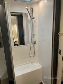 GRANDE ZONA GIORNO CON SEDILI GIREVOLI,AMPIA TOILETTE COMPLETAMENTE ACCESSORIATA E AMPIA DOCCIA CONTRAPPOSTA