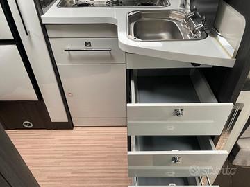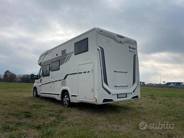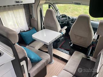 Splendida opportunita' pari al nuovo; camper ideale per lafamiglia da 4/5 componenti, con ampispazi all'interno. Il camper si presenta nella parte posteriore con ampiomatrimoniale trasversale e grande garage sottostante ( a volume variabilemanualmente), ideale per caraicare moto, bici e attrezzature sportive