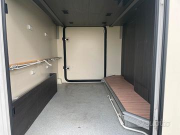 grande garage illuminato, doppia aperturacon fondo antiscivolo e golfari per fissaggio materiale