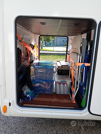 Doccia separata dal bagno, botola sul pavimento, chiusura centralizzata cabina e cellula, sedili girevoli con braccioli, Luci a LED sia esterno che interno, tenda in cabina, aria condizionata in cabina, stacca batteria, radio bluetooth con comandi al volante 7 pollici, navigatore vocale, retrocamera, sensori posteriori, cerchi in lega, gomme 4 stagioni gonfiate con azoto, pannello solare da 140.