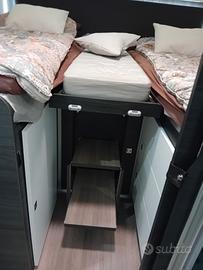 Doccia separata dal bagno, botola sul pavimento, chiusura centralizzata cabina e cellula, sedili girevoli con braccioli, Luci a LED sia esterno che interno, tenda in cabina, aria condizionata in cabina, stacca batteria, radio bluetooth con comandi al volante 7 pollici, navigatore vocale, retrocamera, sensori posteriori, cerchi in lega, gomme 4 stagioni gonfiate con azoto, pannello solare da 140.