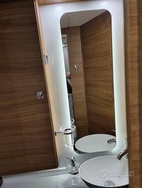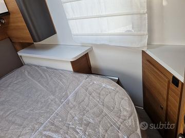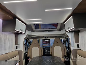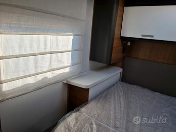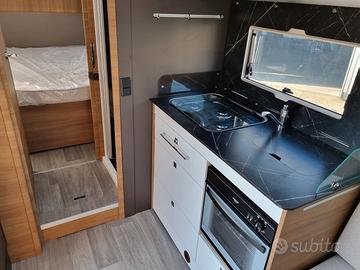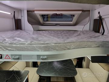 semintegrale Benimar con letto centrale posteriore e garage sottostante arredato con golfari , ganci di fissaggio e doppio portellone di accesso, con doccia separata unificabili in ambiente unico grazie alla doppia porta divisoria tra zona notte e zona dinette dove si trova un ulteriore letto basculante elettrico , divanetti face to face con isofix , cucina servita da frigorifero 150L a compressore, cappa aspirante , cassettoni e pensili a chiusura soft per un comodo stivaggio, porta ingresso cellula XL con bidoncino spazzatura, zanzariera, chiusura centralizzata. In cabina , i cui sedili girevoli captain chair completano la zona giorno, aria condizionata , cruise control, radio DAB con comandi al volante ed altoparlantti incassati in cellula, ABS, ESP, Traction plus. di serie sensori retromarcia, cerchi in lega 16" con pneumatici M+S, fari fendinebbia , luci interne a led. OPTIONAL AGGIUNTI : forno a gas, freno a mano elettrico , radio Pioneer con retrocamera 9", riconoscimento segnaletica e luci, assistnza velocità, controllo mantenimento carreggiata, frenata emergenza riconoscimento pedoni, luce esterna led, pannello solare , oscuranti plissettati in cabina. PREZZO INDICATO SU STRADA