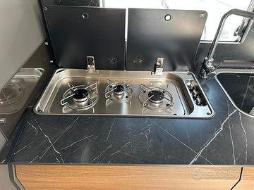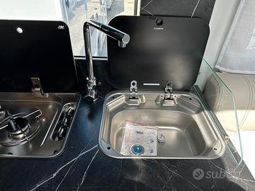 telecamera a colori, pannello solare da 150 W, luce a led esterna, oscuranti plisssettati in cabina