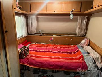 Vendesi roulotte con casetta in legno 6 posti letto totali.