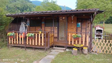 bungalow con Roulotte Adria in buone condizioni corredata di targa e libretto originale, cedo in blocco unico roulotte+casetta da smontare e portare via dalla piazzola sita a Roaschia Cn entro giugno prezzo impegnativo di 100 euro più voltura roulotte