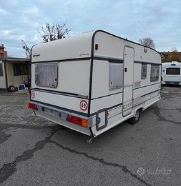 CARAVAN ROULOTTE BURSTNER 420 , ANNO 1992, 3/4 POSTI LETTO, DINETTE NATERIORE TRASFORMABILE IN LETTO MATRIMONIALE, DINETTE CON TAVOLO POSTERIORE NTRASFORMABILE IN LETTO DA 1-2 POSTI, BAGNO CON WC, STUFA E TERMOVENTILAZIONE TRUMATIC, ZANZARIERE FINESTRE, LUNGHEZZA TOT. CON TIMONE MT. 5,94 , LARGHEZZA MT. 2,17, PESO A PIENO CARICO (F2) KG. 1.000 , DA REVISIONARE 11/2027 PER INFO TEL.051533404 GAMBERINI CARAVAN BOLOGNA