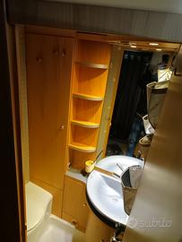 Ampia apertura gavone dall'esterno con di stivaggio sotto il letto con accesso sia d'avanti che dietro.