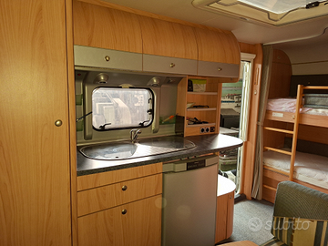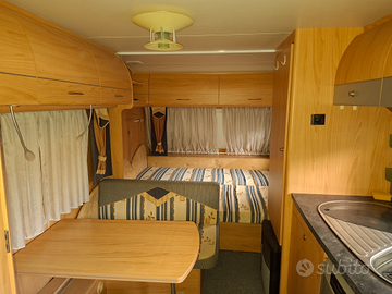 Caravan Burstner Belcanto 490 TK anno 2006.lunghezza totale 7,31 mt,larghezza 2,3mt massa a pieno carico 1300kg.Matrimoniale anteriore,dinette centrale trasformabile in letto,letto a castello trasversale,bagno con wc a cassetta,lavabo.frigo trivalente nuovo e piano cottura a tre fuochi.boiler a gas,stufa trumatic S 3002 con ultraheat posteriore a 220V, caravanstore zip completo di pareti laterali e frontale completo di pali di pressione e rinforzo centrale.la caravan è ferma da 3 anni,da revisionare.mover prestige 2