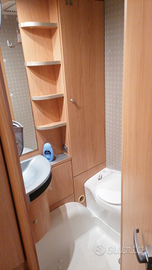 Bagno con lavabo acqua calda e fredda, Wc con cassetta Thetford estraibile.