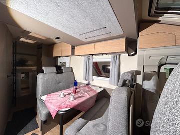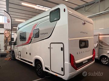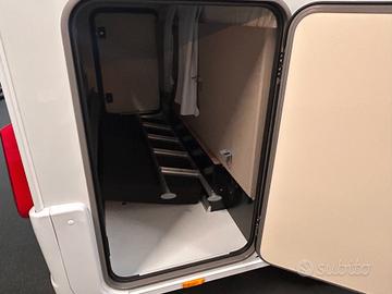 PACCHETTO COMFORT: oscuranti plissettati in cabina - sun roof - porta con finestra e chiusura centralizzata - gradino elettrico - sportello garage lato sx - oblò 50×70 - illuminazione indiretta - schermo di controllo 7'' - my bürstner app - finestre con cornici