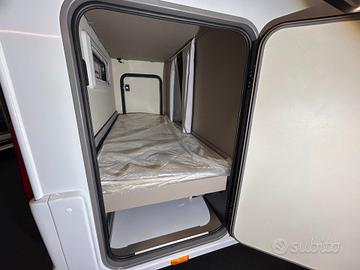 SEMINTEGRALE CON LETTI A CASTELLO TRASVERSALI , DINETTE FACE TO FACE E LETTO BASCULANTE ANTERIOREDucato 2.2 140cv 3500kg alimentazione: Gasolio massa: 35q.li posti omologati: 5 posti letto: 6 lunghezza: 6.71m Altezza: 2,95m Larghezza: 2,30mAccessori optional installati:MECCANICA FIAT DUCATO 2.2 140CV 3500KG