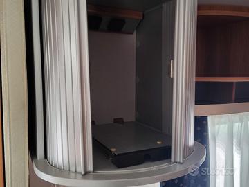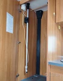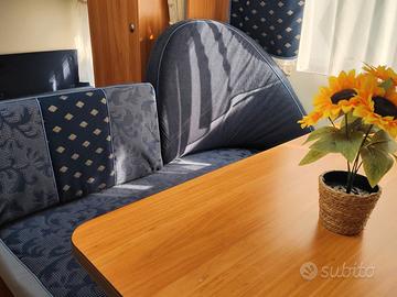 La dinette classica si trova al centro, mentre la cucina lineare è attrezzata con un piano cottura a tre fuochi, un lavello e un frigorifero con cella freezer separata, Il bagno è completo di un impianto doccia con doccino estraibile, ampi vani di stivaggio, un armadio capiente, Le finestre e gli oblò sono provvisti di zanzariere e oscuranti, completa di veranda.