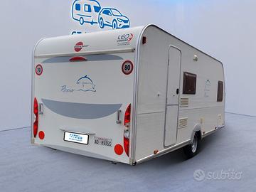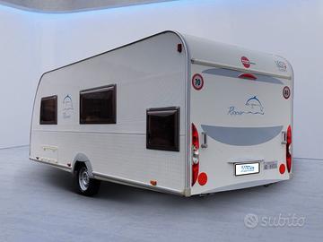 Bürstner Flipper 495 TK è una roulotte pensata per le famiglie, caratterizzata da una disposizione che offre fino a 6 posti letto, letto matrimoniale fisso nella parte anteriore, una dinette centrale trasformabile in un ulteriore letto e letti a castello nella parte posteriore, ideali per i bambini.