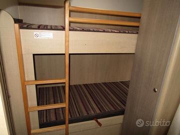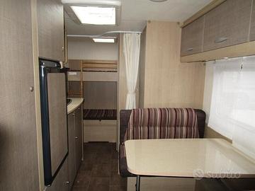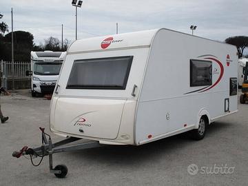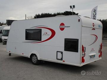 Caravan in ottime condizioni, Buerstner Premio 495 TK del 2013, 1.200 Kg di massa a pieno carico con telaio AL-KO. Lunghezza compreso timone 710 cm, 6 posti letto con letto matrimoniale basso sempre pronto, dinette classica trasformabile in matrimoniale e letto a castello posteriore trasversale, trasformabile in garage. Dotata di movimentatore elettrico mover, luce esterna, tendalino con cassone in alluminio come quello dei camper, frigorifero trivalente, oblò panoramico, riscaldamento a gas, bagno con WC a cassetta, piatto doccia ed altro ancora.