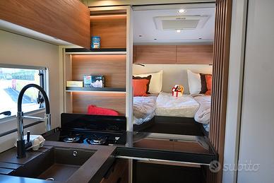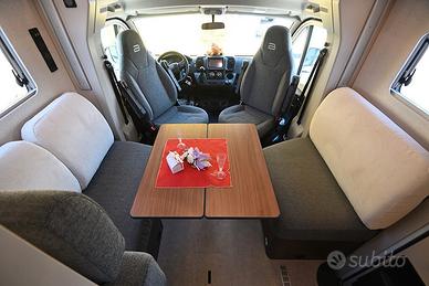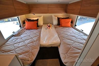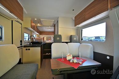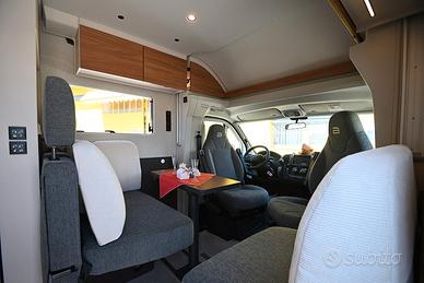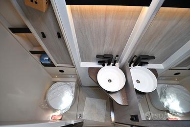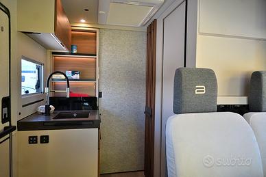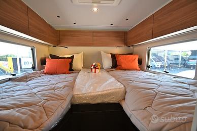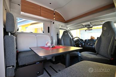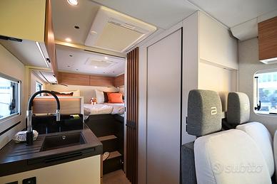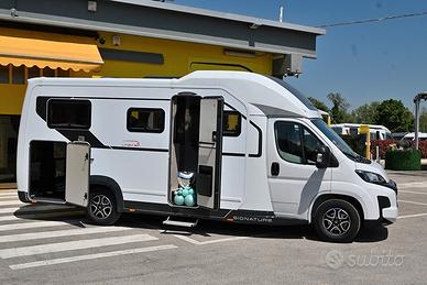 BURSTNER SIGNATURE SFT 7.1: semintegrale con basculante e letti gemelli in coda unico nel suo genere! Nuovo da immatricolare, disponibile in visione e pronta consegna! Design esclusivo, caratteristiche tecnico-costruttive di alto livello, soluzioni intelligenti, multifunzionali e salvaspazio! Cucina dotata di frigorifero a compressore a cassetto e dispensa sali-scendi elettrica, letto basculante a scomparsa nel soffitto che non compre la porta d'ingresso quando in uso, toilette dotata di parete scorrevole che consente la creazione di una doccia separata, possibilità di separare zona giorno e zona notte, living dotato di panca frontemarcia ruotabile che consente la creazione di un soggiorno face-to-face in sosta, tavolo del living scorrevole grazie a guida a pavimento. DOPPIO PAVIMENTO TECNICO, TELAIO RIBASSATO AL-KO, CAMBIO AUTOMATICO e BATTERIA AL LITIO di serie!!! Meccanica: Fiat Ducato 2.2 MJ 140 CV AL-KO Lunghezza: 7,17 m Larghezza: 2,30 m Altezza: 2,86 m Posti letto: 4 Posti Omologati: 4 VEICOLO COMPLETO DI: - Cambio automatico - Telaio ribassato AL-KO - ESP, Traction+, Hill Holder, Hill Descent Control - Climatizzatore manuale in cabina - Cruise Control - Airbag passeggero - Fendinebbia - Specchietti retrovisori regolabili elettricamente e riscaldabili - Stazione multimediale da 7" - Telecamera di retromarcia - Sensori di pressione degli pneumatici - Batteria al litio da 150 Ah - Struttura esterna realizzata in vetroresina - Serbatoio di recupero isolato e riscaldato - Pacchetto "Comfort Cellula" (Porta cellula con zanzariera e chiusura centralizzata, finestre con cornice a filo carrozzeria, materasso comfort con rete Froli per letti posteriori, oblò panoramico 50×70 cm in zona giorno, illuminazione d'ambiente, porta scorrevole di separazione zona giorno/notte, oscuranti plissettati in cabina, rivestimenti pareti laterali interne in feltro) - Pacchetto "Cucina Premium" (frigorifero a compressore a cassetto da 138 litri, dispensa dotata