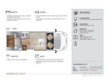 Tipologia: Camper - Semintegrale Carburante: Diesel Tipo di cambio: Manuale SPECIFICHE: - Lunghezza: 6,39 M - Larghezza: 2,15 M - Posti omologati: 4 - Posti letto: 2 (+2) ACCESSORI: - Sistemi sicurezza ADAS - Cruise control - Riscaldamento Truma Combi 4 Gas - Sensori di parcheggio anteriori - Zanzariera plissettata scorrevole su porta d'ingresso - Climatizzatore automatico - Sistema infotainment SYNC 4 - Retrocamera Ford - Isofix - Spazio per TV 32" - Doccia con ante rigide - Comfort Seats - Frigorifero trivalente automatico 137 lt - Letto basculante 190 x 142 cm - Letto dinette 201 x 104 cm OPT - Toilette con WC e doccia indipendenti - Cucina con lavello circolare in acciaio inox e piano cottura a 2 fuochi - Dinette face to face, tavolo a libro con gamba adattabile elettronicamente Eliscar è un concessionario ufficiale C.I. (CARAVAN INTERNETIONAL, GRUPPO TRIGANO). Concessionario ufficiale MAXUS - FOTON - HONDA MOTO - EMC - GREAT WALL CENTRO USATO AUTO E MOTO Possiamo personalizzare il tuo finanziamento e permutare il tuo usato. PER RAGGIUNGERCI: uscita autostradale Sommacampagna (A4 MI-VE), subito a sinistra, direzione Verona. A 1,5 Km ci trovate sulla Vostra sinistra. Allestimenti ed accessori sono puramente indicativi e da definirsi in sede.Il prezzo annuncio ha finalità informativa e non costituisce offerta vincolante. Il prezzo indicato è puramente indicativo e soggetto a possibili variazioni. Per ulteriori informazioni: Telefono: Email: info@sitoweb Rivenditore ELISCAR SRL